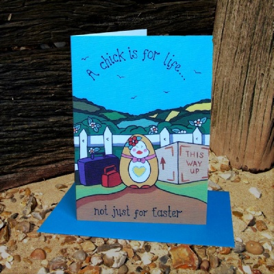 The Seasonal Range “Easter - Chick For Life” greetings card is created from an original acrylic on canvas painting by Olivia, which has been scanned and digitally enhance into a greetings card. The card measures approximately 12.5 cm x 17.5 cm and comes cello wrapped with a colour coordinated envelop. The inside of the card has been left blank for your own message.