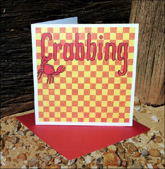 The Seaside Words Range “Crabbing” greetings card is created from an original acrylic on canvas painting by Olivia, which has been scanned and digitally enhance into a greetings card. The card measures approximately 15 cm x 15 cm and comes cello wrapped with a red envelop. The inside of the card has been left blank for your own message.