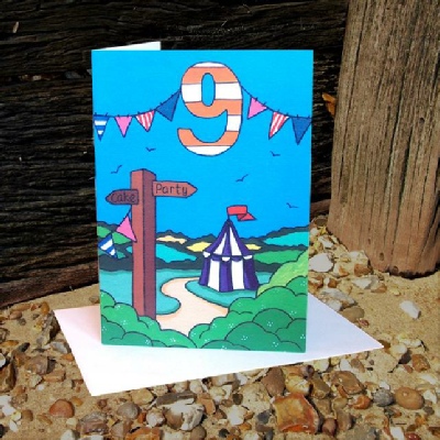 The Simply Country Range “Ninth Birthday Party” greetings card is created from an original acrylic on canvas painting by Olivia, which has been scanned and digitally enhance into a greetings card. The card measures approximately 12.5 cm x 17.5 cm and comes cello wrapped with a colour coordinated envelop. The inside of the card has been left blank for your own message.