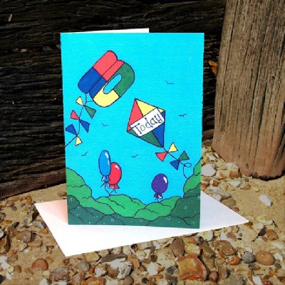 The Simply Country Range “Tenth Birthday Kite Flying” greetings card is created from an original acrylic on canvas painting by Olivia, which has been scanned and digitally enhance into a greetings card. The card measures approximately 12.5 cm x 17.5 cm and comes cello wrapped with a colour coordinated envelop. The inside of the card has been left blank for your own message.