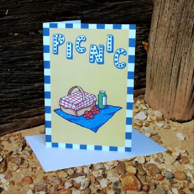 The Candy Collection Range “Picnic” greetings card is created from an original acrylic on canvas painting by Olivia, which has been scanned and digitally enhance into a greetings card. The card measures approximately 12.5 cm x 17.5 cm and comes cello wrapped with a colour coordinated envelop. The inside of the card has been left blank for your own message.