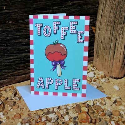 The Candy Collection Range “Toffee Apple” greetings card is created from an original acrylic on canvas painting by Olivia, which has been scanned and digitally enhance into a greetings card. The card measures approximately 12.5 cm x 17.5 cm and comes cello wrapped with a colour coordinated envelop. The inside of the card has been left blank for your own message.